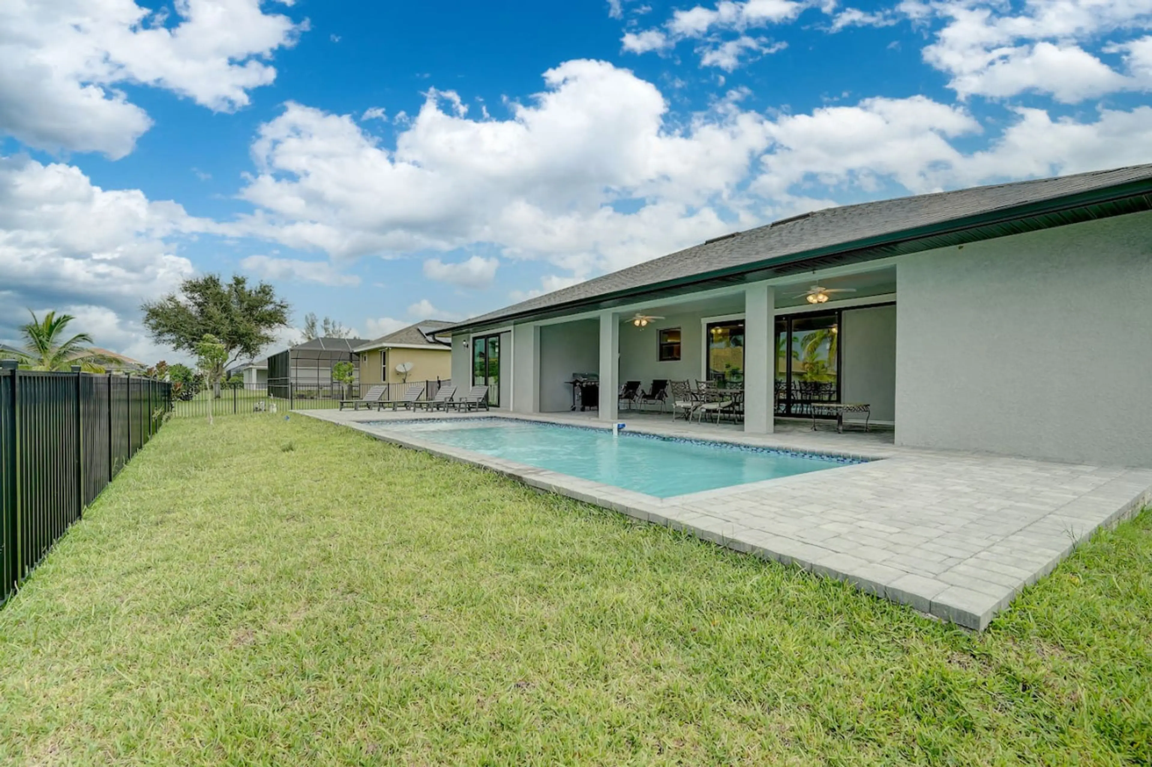 Find your escape at this brand new large brand new Five (5) Bedroom home with Three (3) Full Bathrooms home in Cape Coral, Florida. The home is very spacious and features a large heated pool and patio including a grill. It has been stocked well including the kitchen utensils and needs for a comfort...